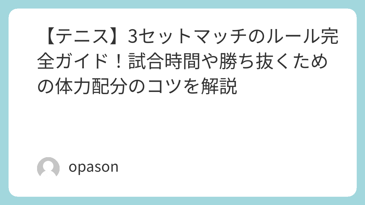 今回は、3セットマッチの基本ルールを整理しながら、実際に私が真夏の炎天下で2時間を超える死闘を演じた際の体験を交え、最後まで戦い抜くためのリアルな戦略をお伝えします。