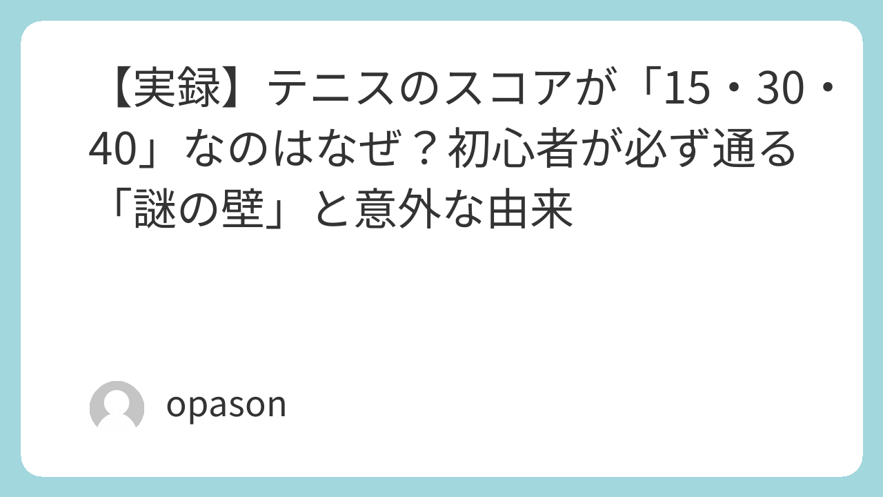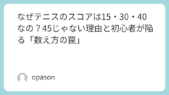 テニスのスコアを覚えるのは最初は大変ですが、その背景に「時計の針を動かすワクワク感」や「審判のちょっとした手抜き」があったと知ると、なんだか親近感が湧いてきませんか?