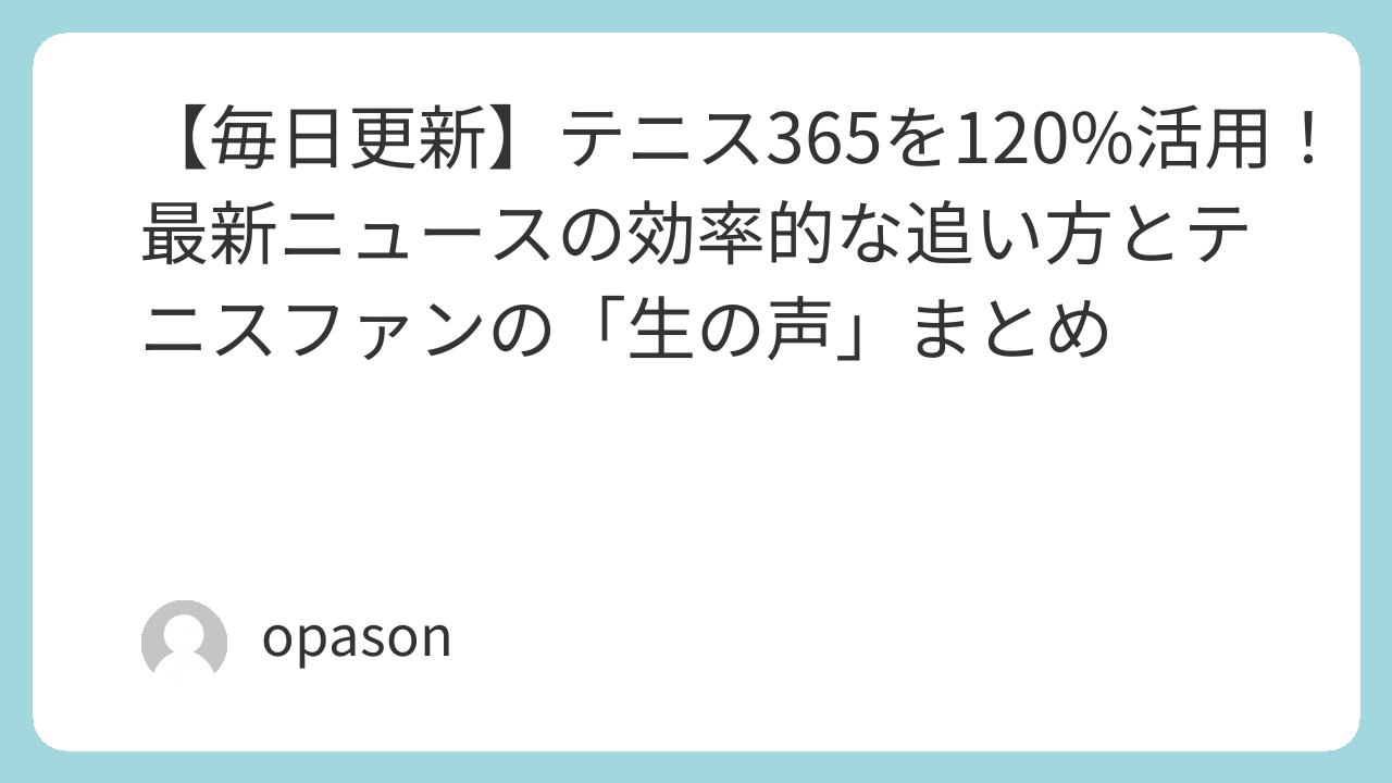 テニスファンにとって、もはや生活の一部とも言える「テニス365(tennis365.net)」。しかし、情報量が膨大すぎて「結局、今どのニュースが一番熱いの?」と迷ってしまうことはありませんか?特にグランドスラム期間中は、試合結果の更新が早すぎて追いつけないことも多いですよね。