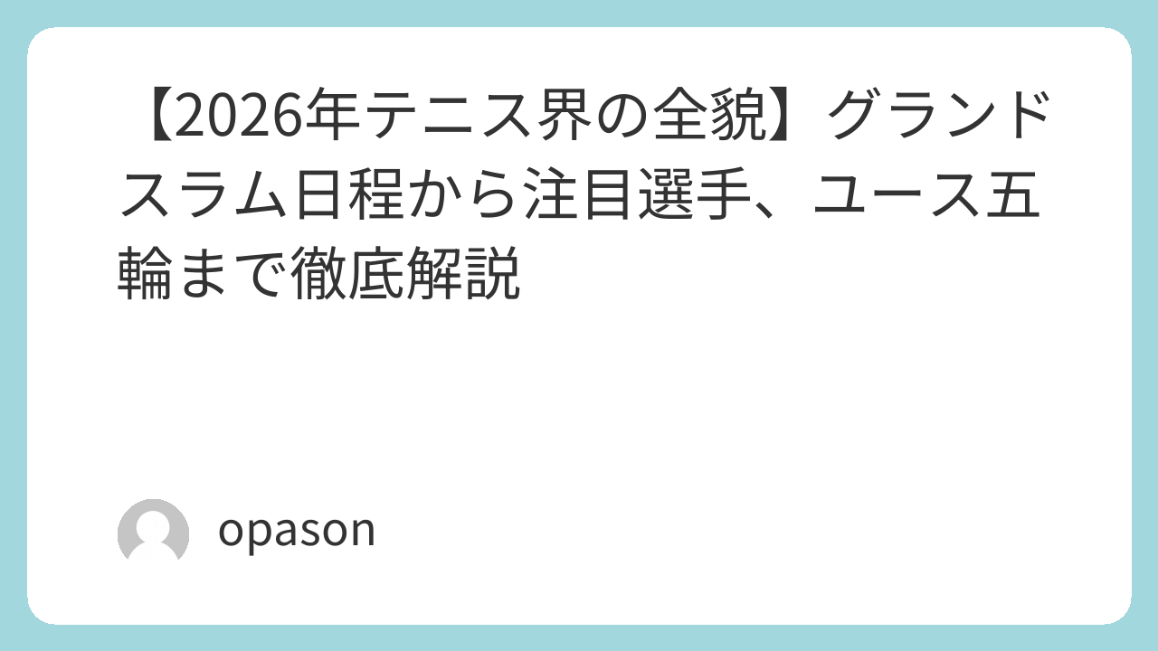 【2026年テニス界の全貌】グランドスラム日程から注目選手、ユース五輪まで徹底解説