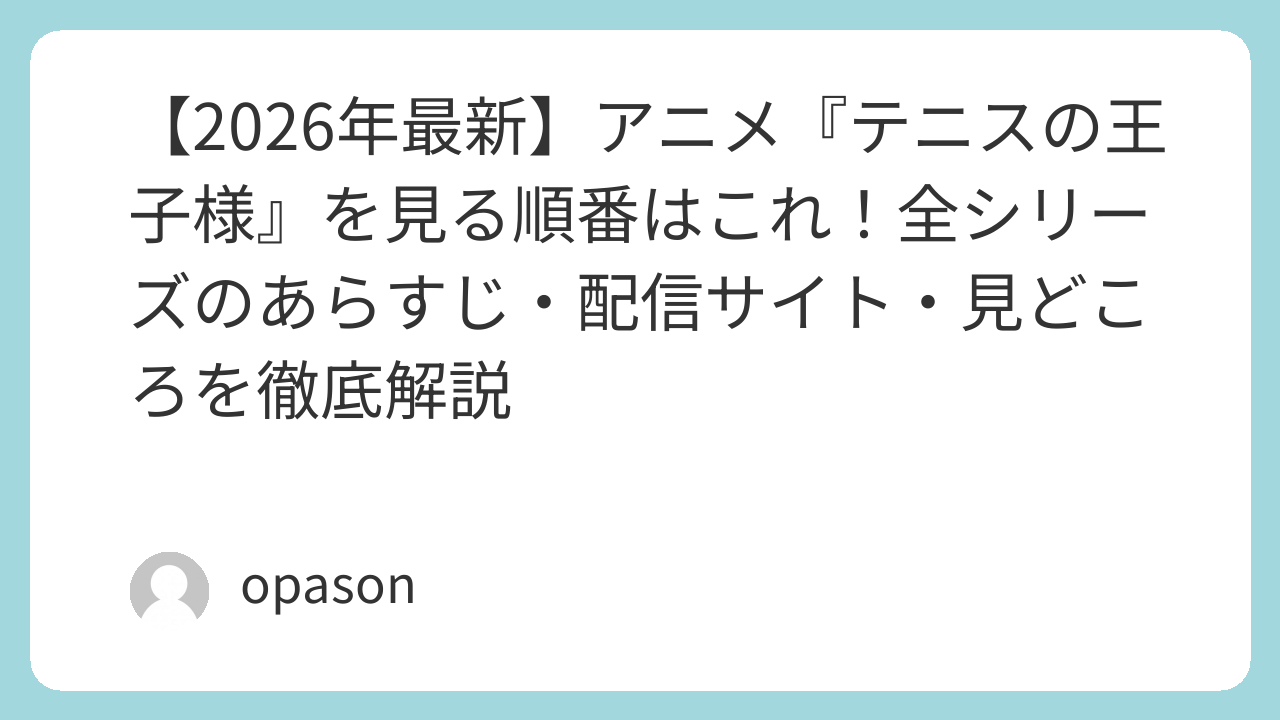 今回は、テニプリを愛してやまない筆者が、自身の視聴体験を交えながら、SEO的にも最適な「最も作品を楽しめる視聴順」と魅力を徹底解説します。