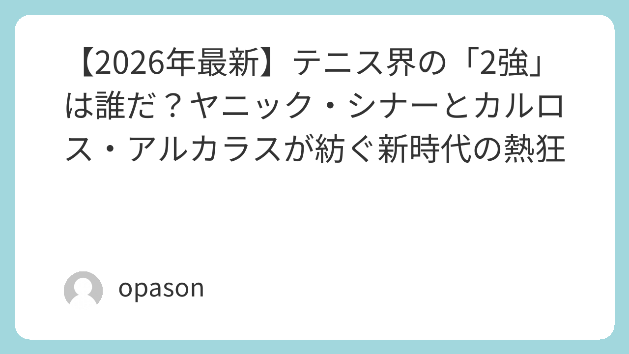 2026年、ジョコビッチという偉大な壁を乗り越え、名実ともに世界の頂点に立ったシナーとアルカラス。この2人のライバル関係は、かつてのフェデラーとナダルのように、今後10年にわたって語り継がれる伝説になるはずです。次のグランドスラム、あなたも寝不足を覚悟して、この歴史の目撃者になりませんか?