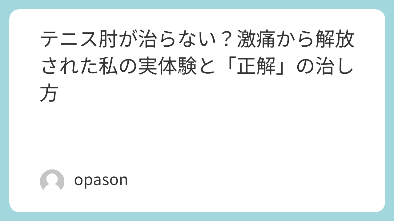 「タオルを絞るだけで電気が走る」「重いカバンが持てない」……。そんなテニス肘(外側上顆炎)の苦しみ、私も痛いほどよくわかります。実は私も1年近く、このしつこい肘の痛みに悩まされてきました。