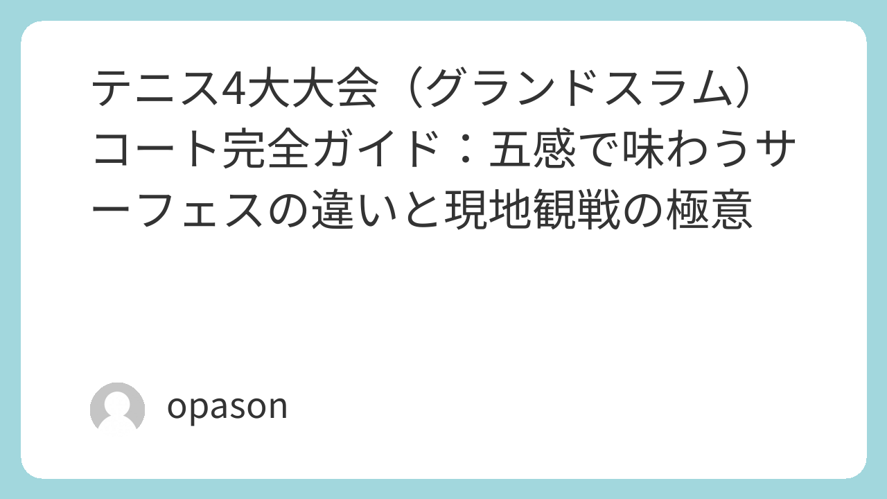 テニスの4大大会は、それぞれが異なる「大地」の上で繰り広げられるドラマです。ハード、クレー、グラス。それぞれのコートが持つ色、音、香り、そしてボールの動きを知ることで、選手のプレー一つひとつに込められた意図が見えてくるようになります。