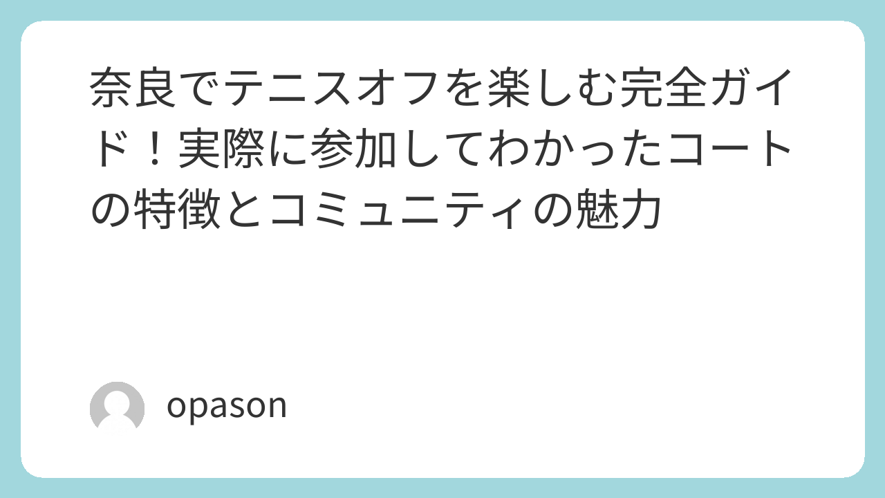 奈良でのテニスオフは、単なるスポーツ以上の「リフレッシュ」を与えてくれます。歴史を感じる空気の中で、初対面の相手とラリーを繋ぐ楽しさは格別です。