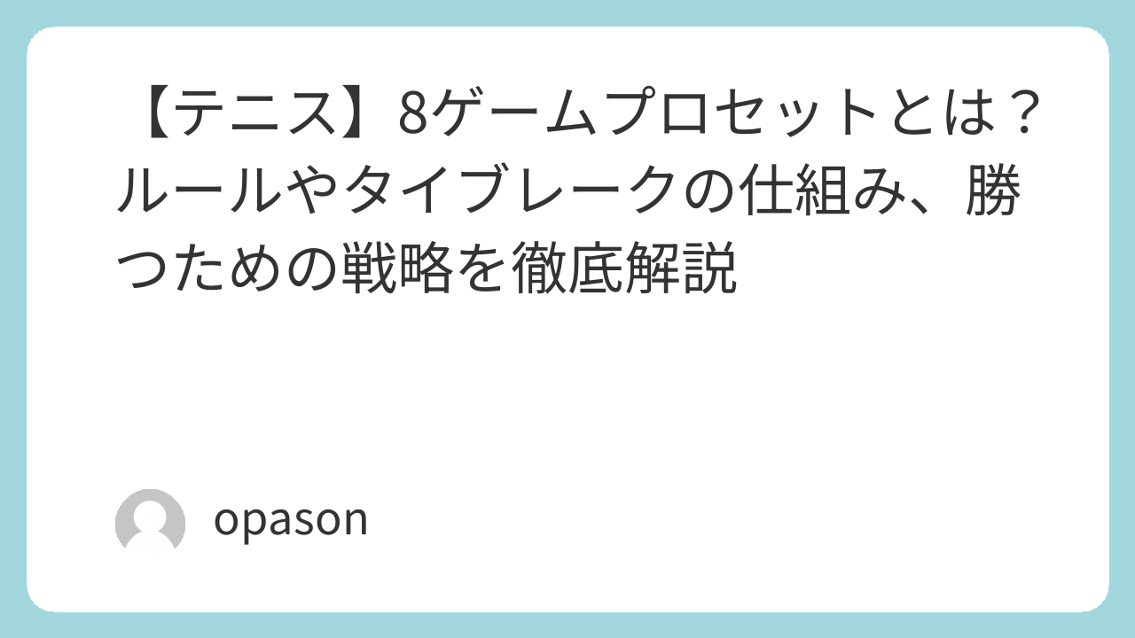 この3点を意識するだけで、あなたの勝率はぐっと上がるはずです。次の大会が8ゲームプロセットなら、それは自分の限界に挑戦する絶好のチャンス。万全の準備でコートに立ちましょう!