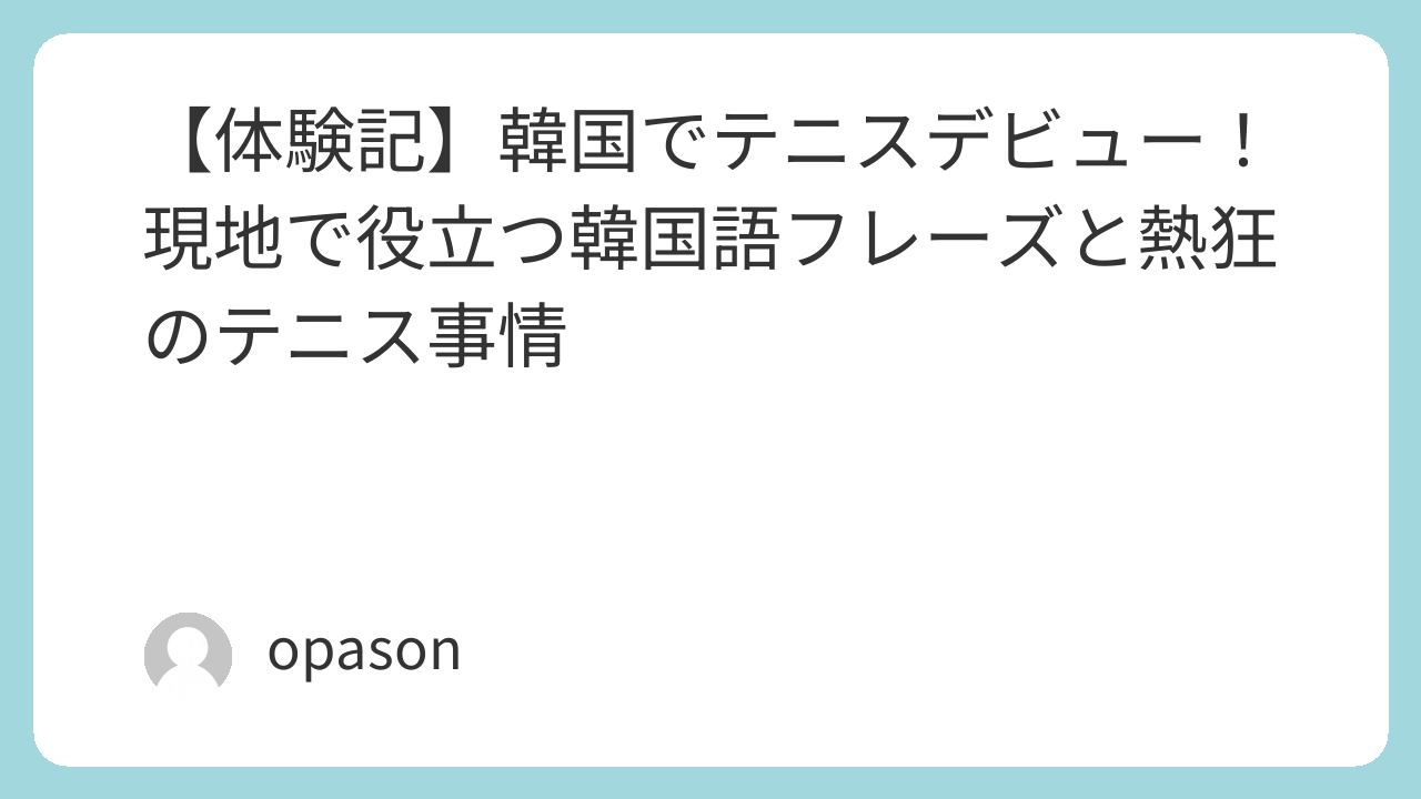 先日、私も実際に韓国へ足を運び、現地のコートでテニスを体験してきました。言葉の壁に不安もありましたが、いくつかの重要な韓国語フレーズと「テニスを楽しみたい」という気持ちがあれば、現地の方々と最高の交流ができました。その実体験をもとに、SEOでも注目される「韓国のテニス事情」と「使える韓国語」を徹底解説します。