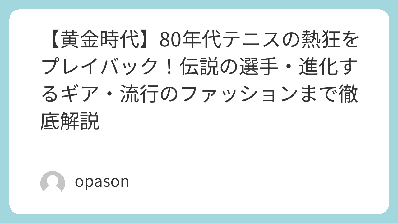 今、改めて振り返ると、80年代のテニスには現代が失いつつある「泥臭い人間ドラマ」と「洗練されたスタイル」が同居していました。当時の熱狂を、実体験に基づいたエピソードと共に紐解いていきます。