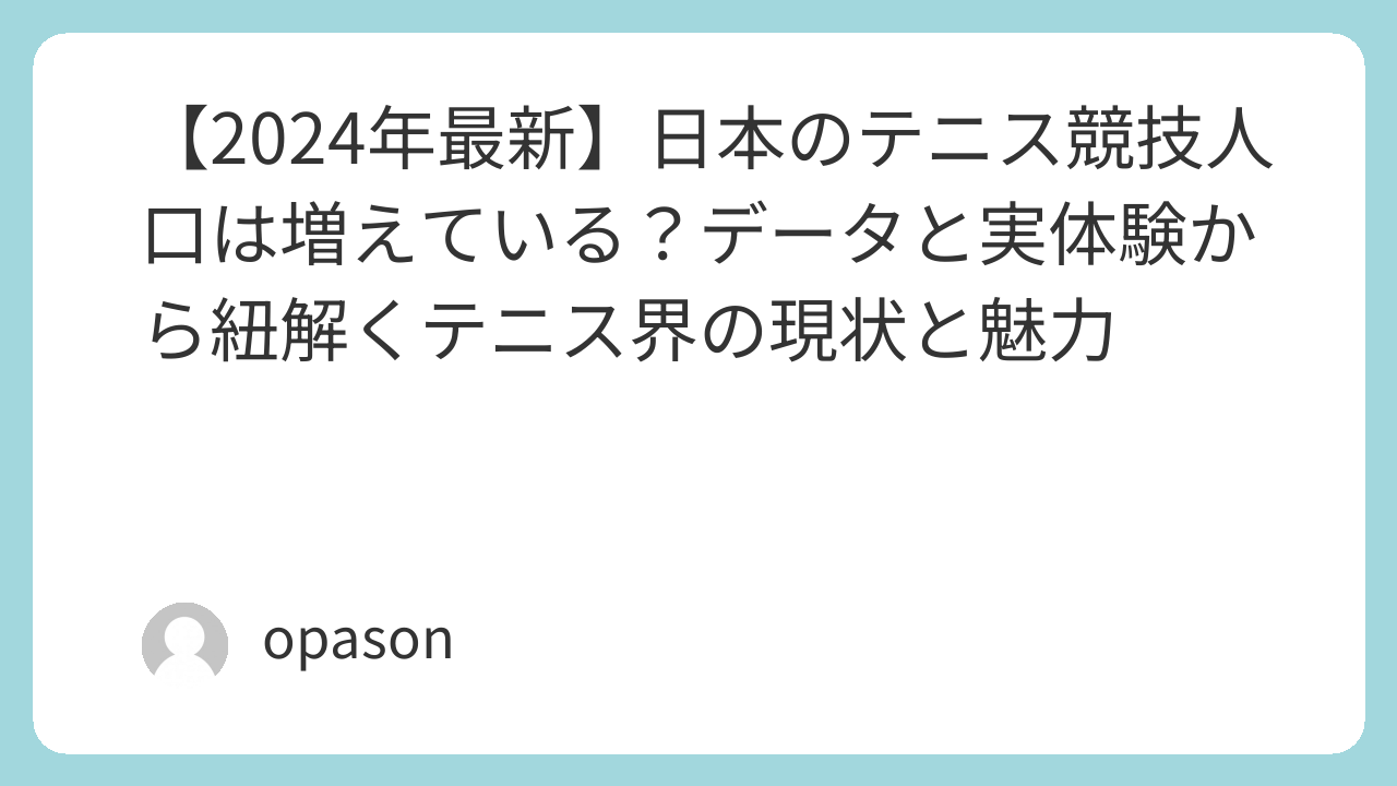 「最近テニスを始めた」「昔やっていたけど再開したい」という声を耳にすることが増えました。実際のところ、日本のテニス競技人口はどう推移しているのでしょうか。統計上の数字と、テニスコートという「現場」で起きているリアルな活気、そして私が実際にラケットを握って感じた体験を交えて、今のテニス界の姿を解き明かします。