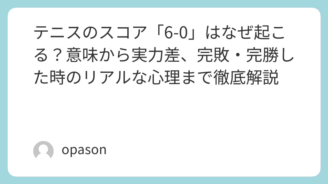 テニスのスコア「6-0」はなぜ起こる?意味から実力差、完敗・完勝した時のリアルな心理まで徹底解説
