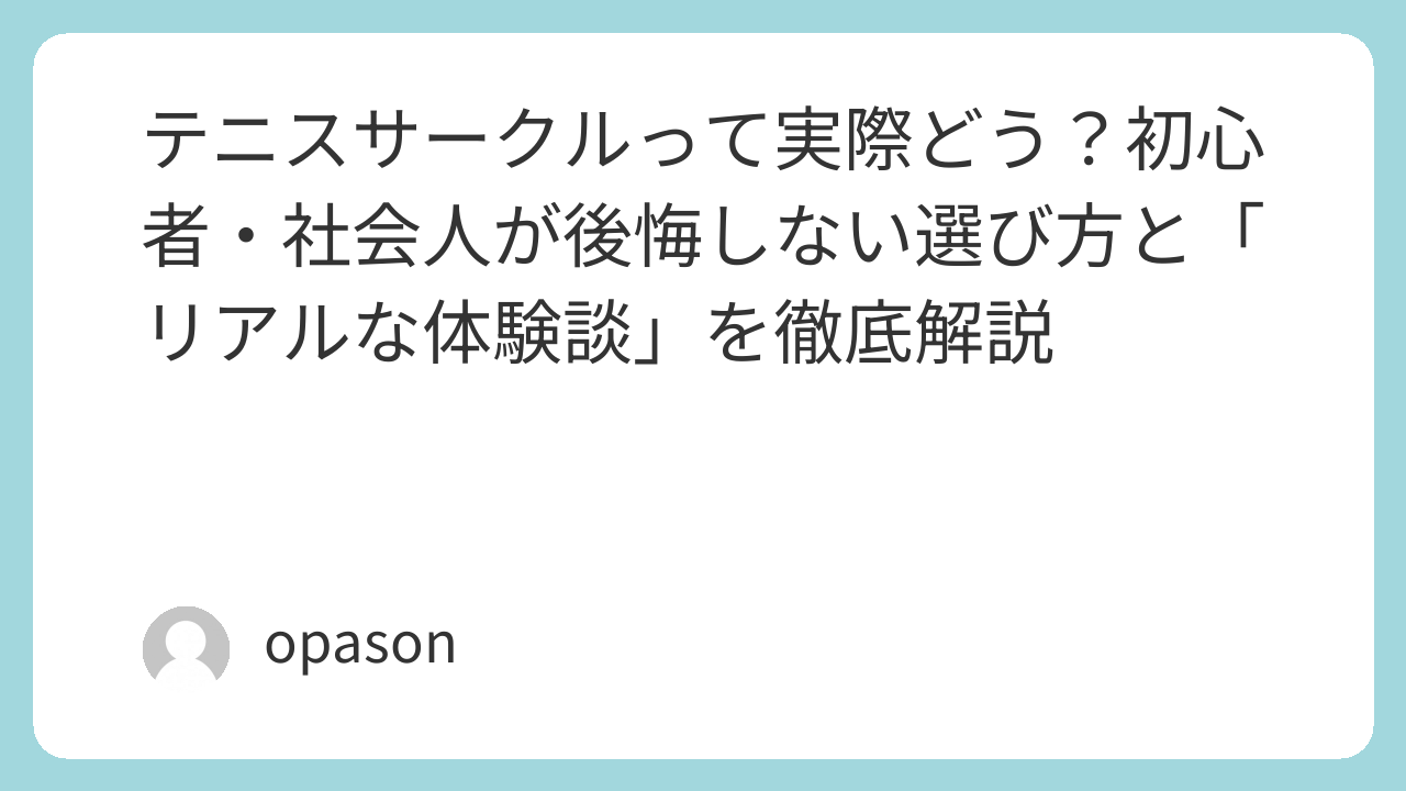 もし一度失敗しても、サークルは星の数ほどあります。あなたにとって最高の「大人の遊び場」が、きっとどこかで見つかるはずです。さあ、今度の週末、テニスウェアに着替えて外へ出かけてみませんか?