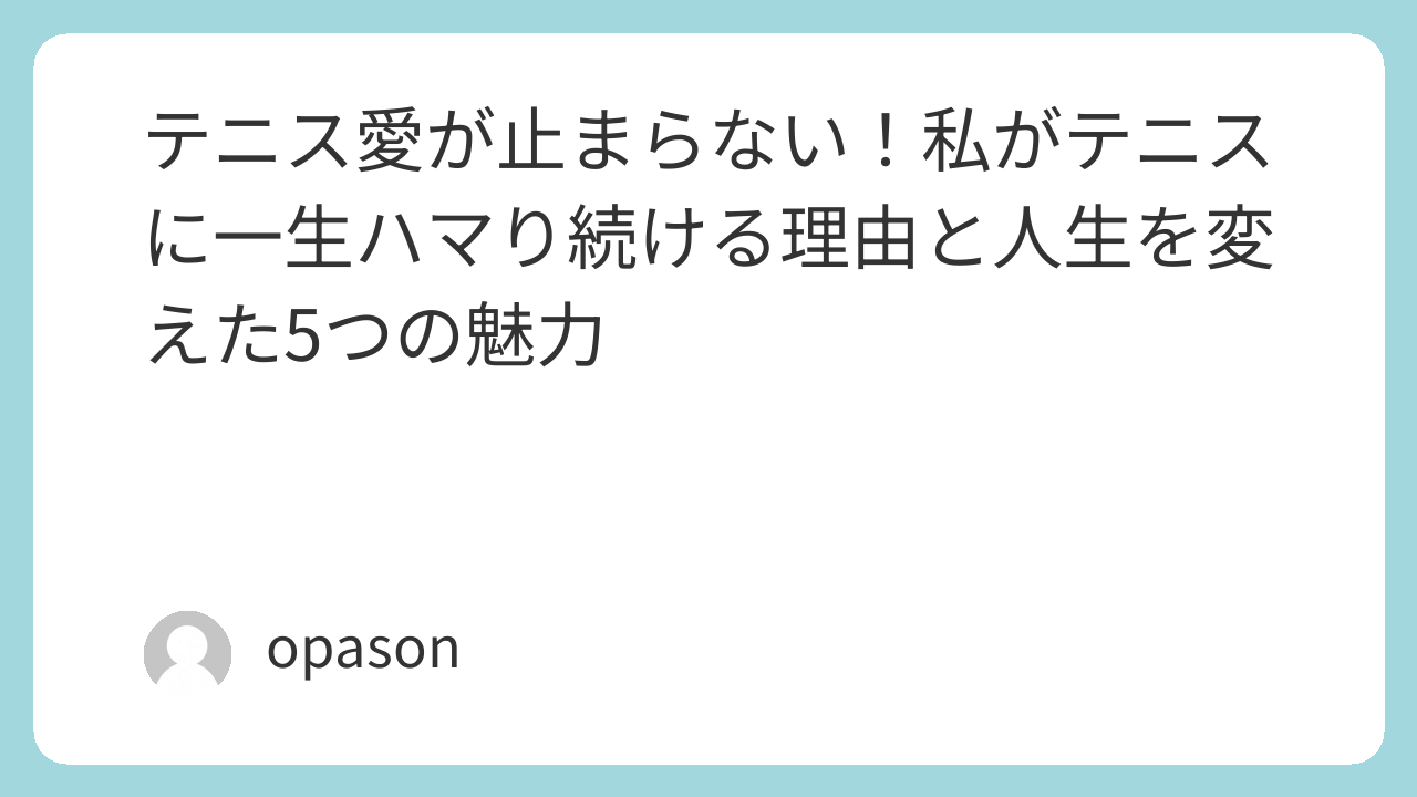 さあ、あなたもラケットを手に取りませんか?次の週末、きっとそこには最高の笑顔と、「テニス愛」に溢れた新しい自分が待っているはずです。