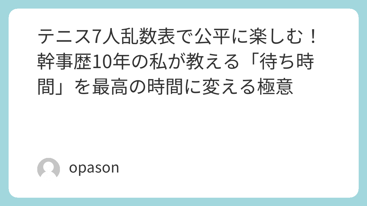 テニス7人乱数表で公平に楽しむ!幹事歴10年の私が教える「待ち時間」を最高の時間に変える極意