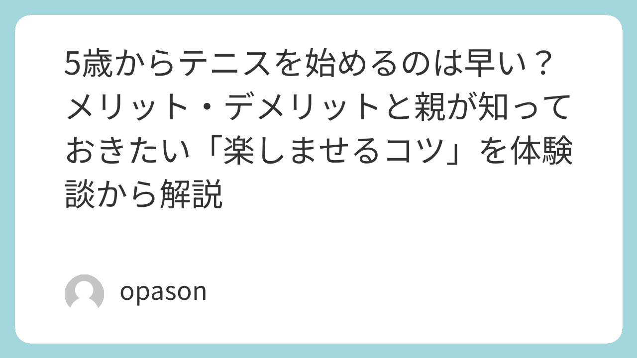 「うちの子、もう5歳だけど何かスポーツを習わせたほうがいいかな?」「テニスってまだ早い?」そんな風に悩んでいるお父さん、お母さんは多いのではないでしょうか。