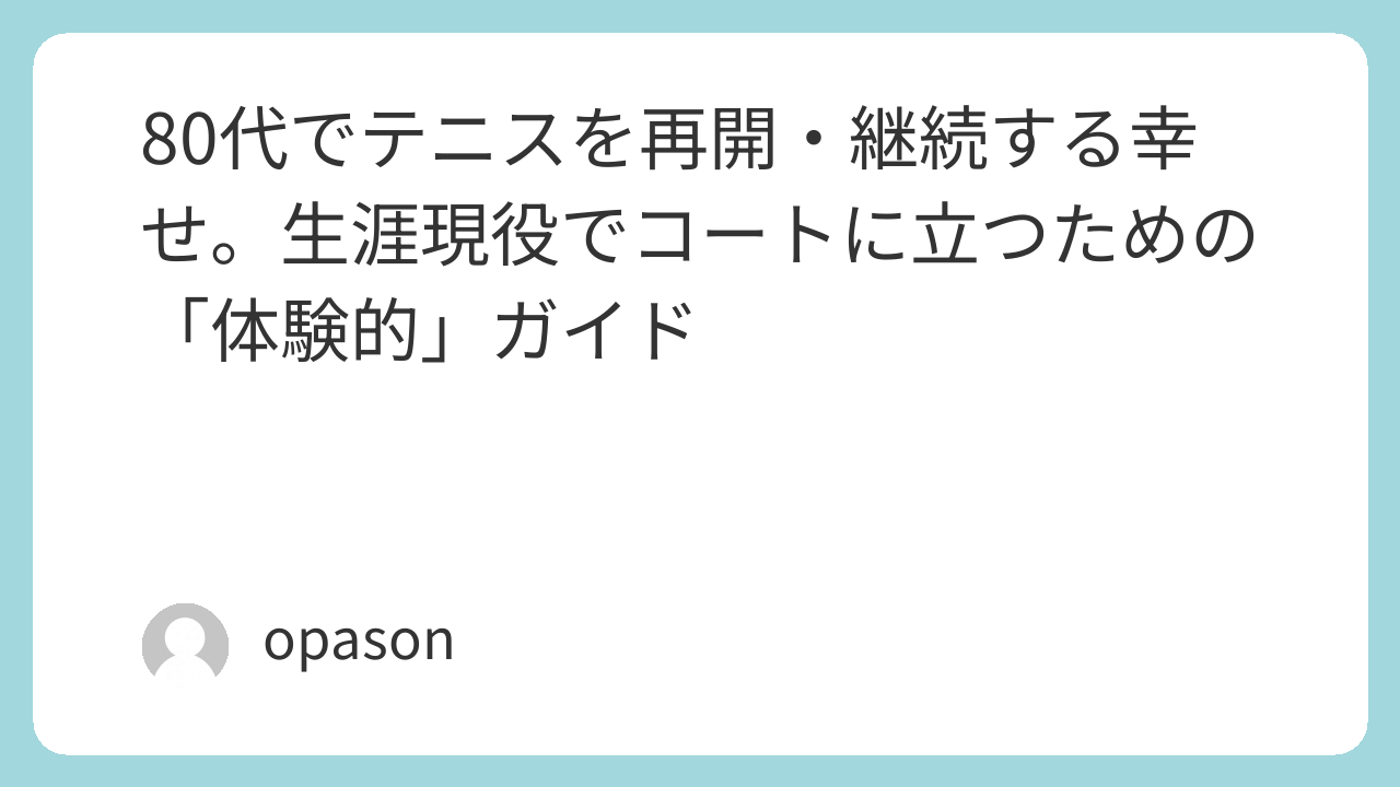 80歳からのテニスは、記録を競うものではなく、人生の質を向上させるための「儀式」のようなものです。もしブランクがあるなら、まずは地域のスクールのシニアクラスや、初心者歓迎のサークルをのぞいてみてください。