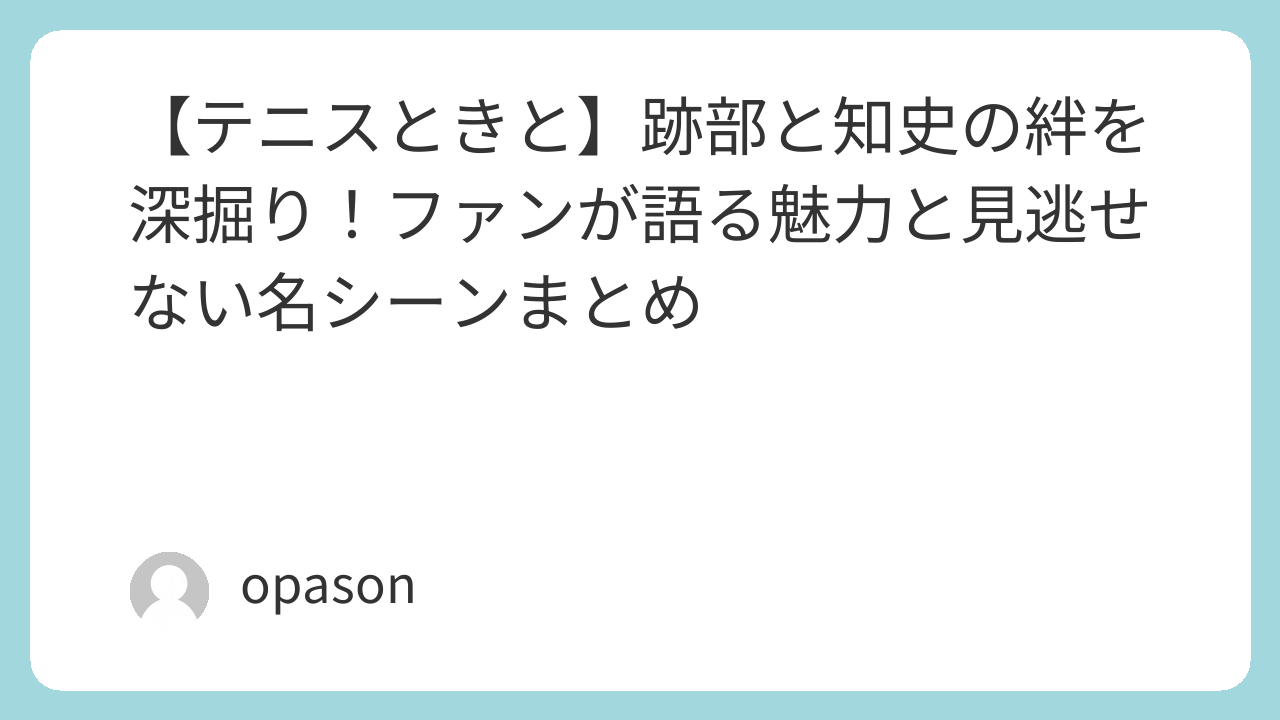 ファンの多くは、二人の「言葉にせずとも伝わる信頼」を大切にしており、その繊細なニュアンスを共有し合っています。特に新テニスの王子様以降の展開において、知史がどのような立ち位置で跡部を見つめ続けているのかについては、夜通し語り合えるほど熱い議論が交わされています。