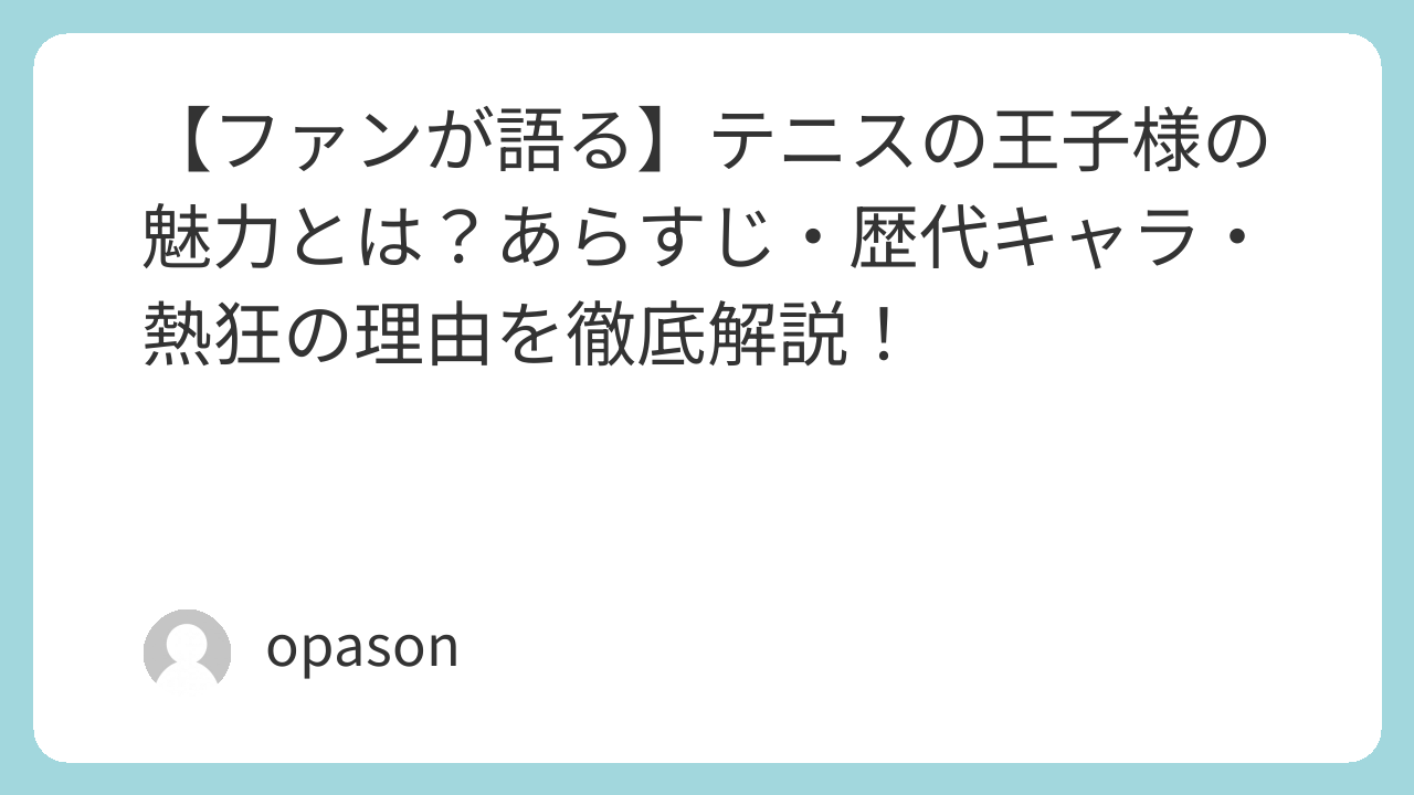 【ファンが語る】テニスの王子様の魅力とは?あらすじ・歴代キャラ・熱狂の理由を徹底解説!