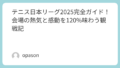 • ダニエル太郎選手:安定してTOP100圏内を維持。長身から繰り出されるサービスは、テレビ画面越しに見るよりもはるかに角度があり、現地で見るとその破壊力に圧倒されます。