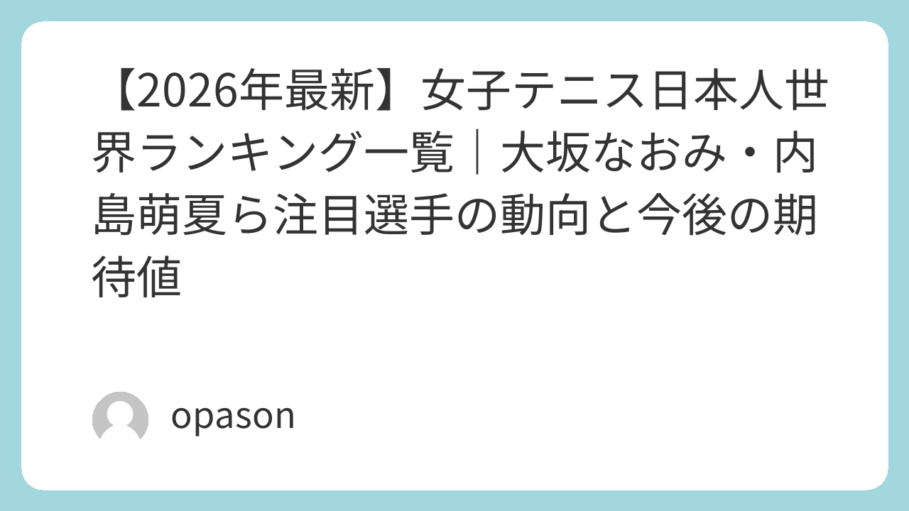2026年の日本女子テニス界は、かつてないほどバラエティ豊かな才能に溢れています。ランキングという数字をきっかけに、彼女たちの血の滲むような努力と、コート上で見せる一瞬の輝きに注目してみてください。きっと、あなたの日常に熱い感動を届けてくれるはずです。