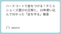 私はフットフォルトを防ぐため、あえてラインから靴一足分後ろに立つようにしています。また、足元を安定させるためにグリップ力の高いシューズを選ぶことも重要です。例えばテニスシューズを新調して、踏み込みの感覚を掴むだけでも、余計な反則を減らす意識に繋がります。