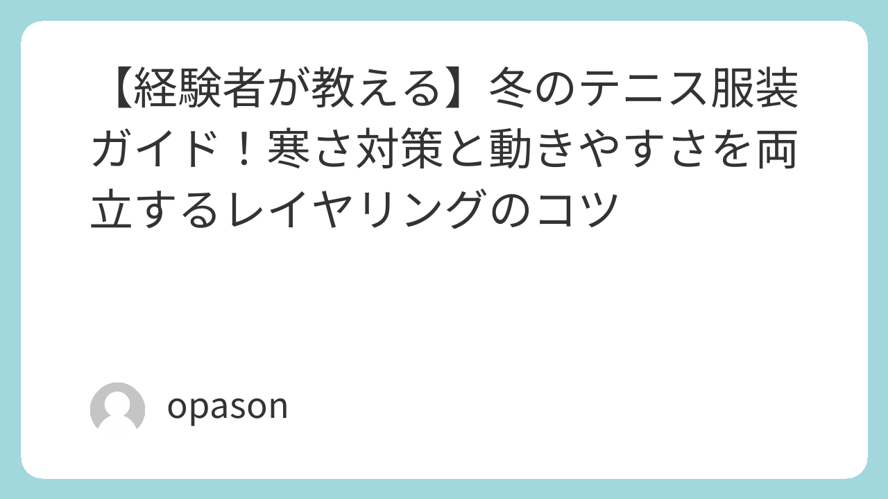 冬のテニスを快適に、そしてスコアを崩さずに楽しむための「正解の着こなし」を、実体験ベースで徹底解説します。