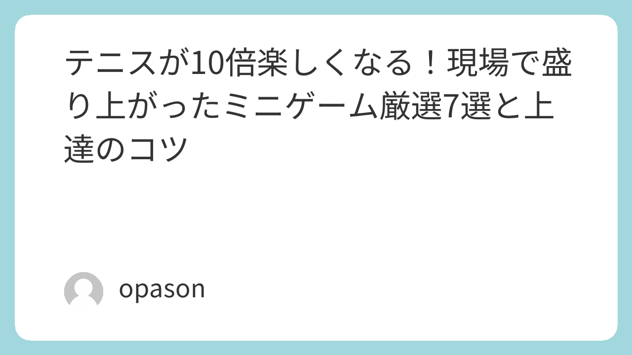 テニスは「Game」です。技術を磨くための苦しい練習も必要ですが、最後は「楽しんだもん勝ち」。明日の練習に、ぜひ一つミニゲームを忍ばせてみてください。コートの空気が一気に明るくなるはずです。