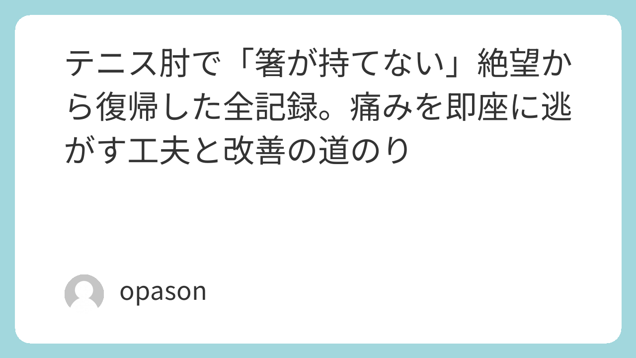 テニス肘で「箸が持てない」絶望から復帰した全記録。痛みを即座に逃がす工夫と改善の道のり