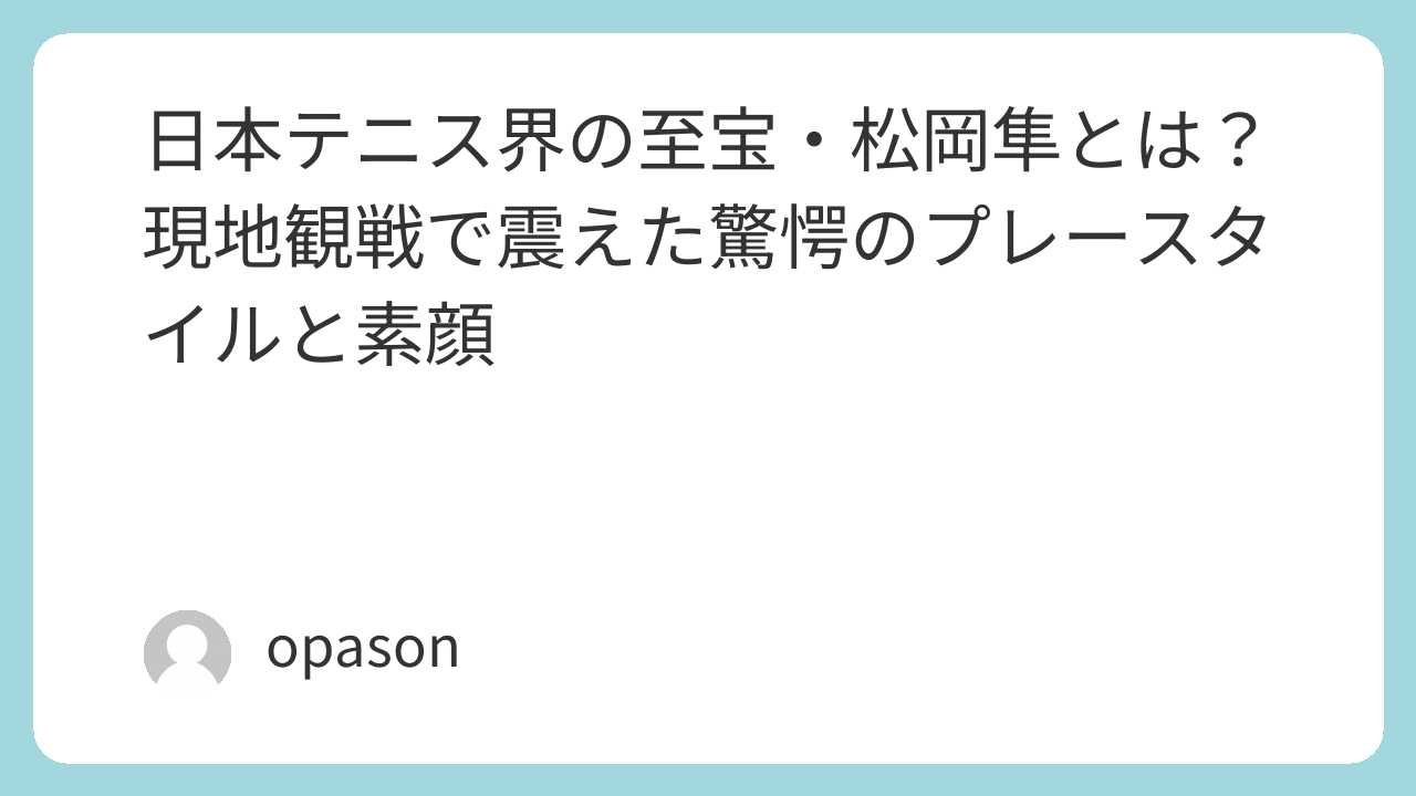 「松岡」という名を聞けば、誰もが熱いあの男を思い浮かべるでしょう。しかし今、日本のテニスファンが最も熱い視線を送っているのは、弱冠19歳にして世界を揺るがし始めている松岡隼選手です。