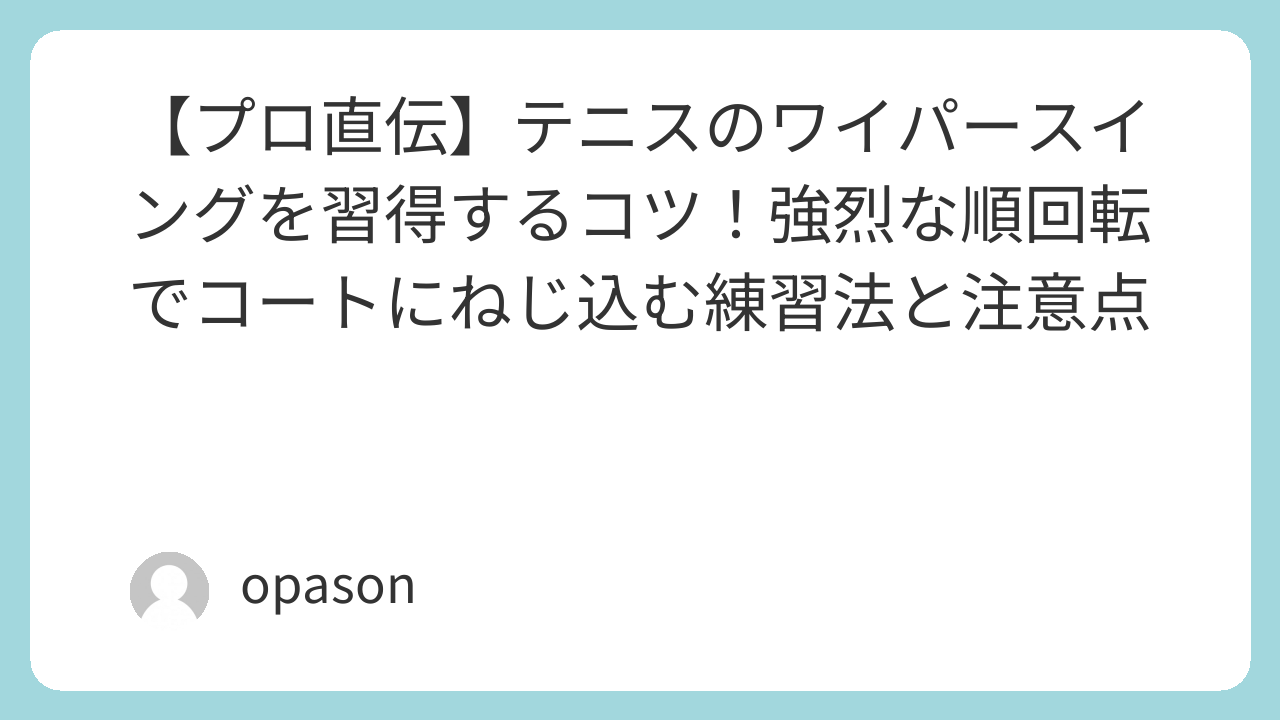 ワイパースイングは、決して力任せに振り回す技術ではありません。正しい体の使い方と、インパクトの瞬間の繊細なタッチが組み合わさって初めて完成します。