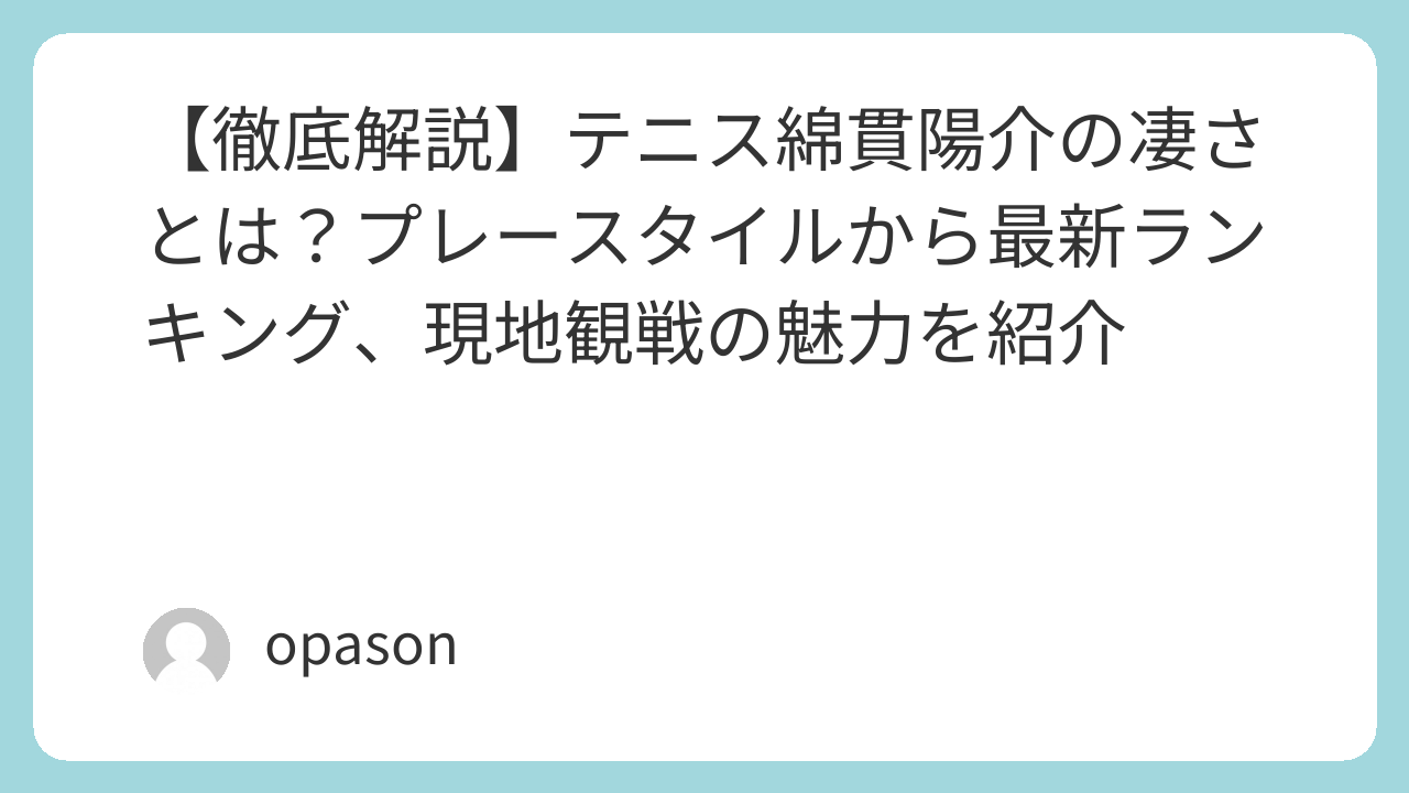 綿貫陽介選手は、世界トップレベルのパワーと、日本人らしい粘り強さを併せ持った稀有な存在です。彼のテニスは、単なるスポーツの試合を超えた「エンターテインメント」としての興奮を与えてくれます。