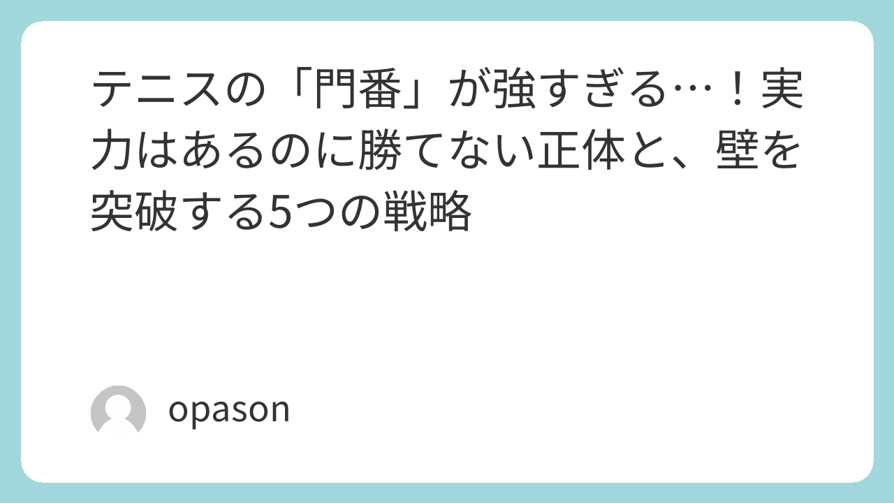 今、門番に苦しんでいるあなた。その壁は、あなたが上のステージで戦うための「最終試験」です。焦らず、一球一球を大切に、彼らのテニスを逆手に取る知略を楽しんでください。