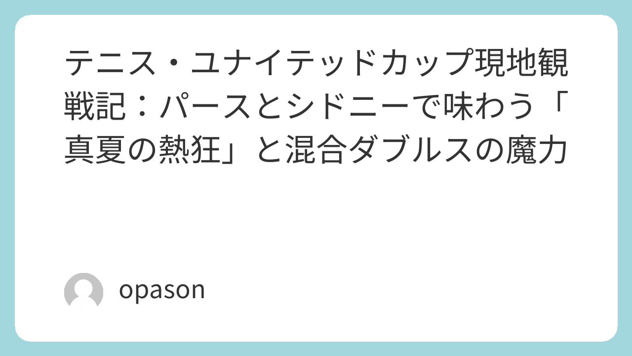テニス・ユナイテッドカップ現地観戦記:パースとシドニーで味わう「真夏の熱狂」と混合ダブルスの魔力