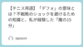 初心者のうちは、よく足元のラインを踏んでしまうフットフォールトに注意が必要です。特に緊張する場面ではテニスシューズのグリップを意識しすぎて、無意識にベースラインを越えてしまうことがよくあります。