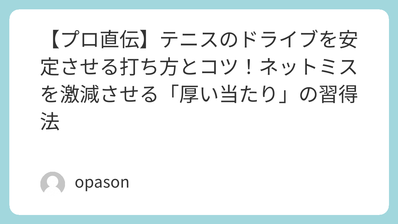 コートでは「ネットの2倍の高さ」を通す練習を繰り返してください。低い軌道でドライブを打とうとするのは中級者以上で十分です。まずは高い軌道で、ベースライン際で落ちるボールを安定させることが、試合で勝てるドライブへの最短距離です。