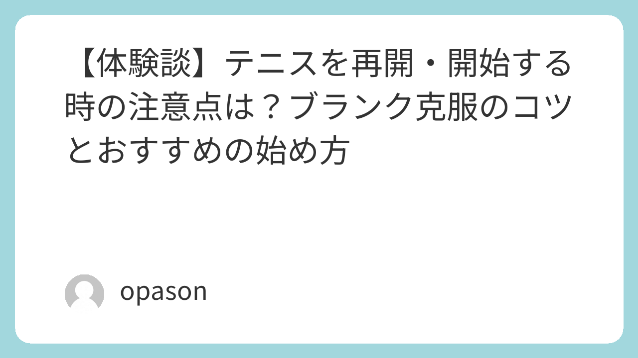 「また始めよう」と思ったその時が、最高の再開タイミングです。コートで会いましょう!