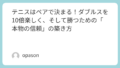 - 20分で限界が来るスタミナ「テニスってこんなに過酷だっけ?」と驚くほど、心臓の鼓動が耳元で聞こえる始末。体力の衰えは、数字で見るよりコートで感じる方がよっぽど残酷です。