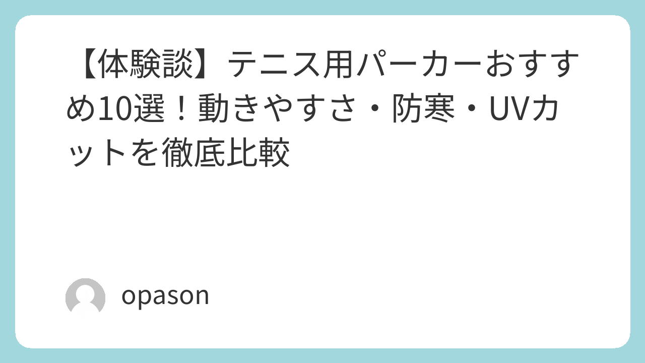 一着、納得のいくパーカーが見つかれば、季節を問わずテニスがもっと楽しくなるはずです。私の体験が、あなたの最高のギア選びの参考になれば幸いです。