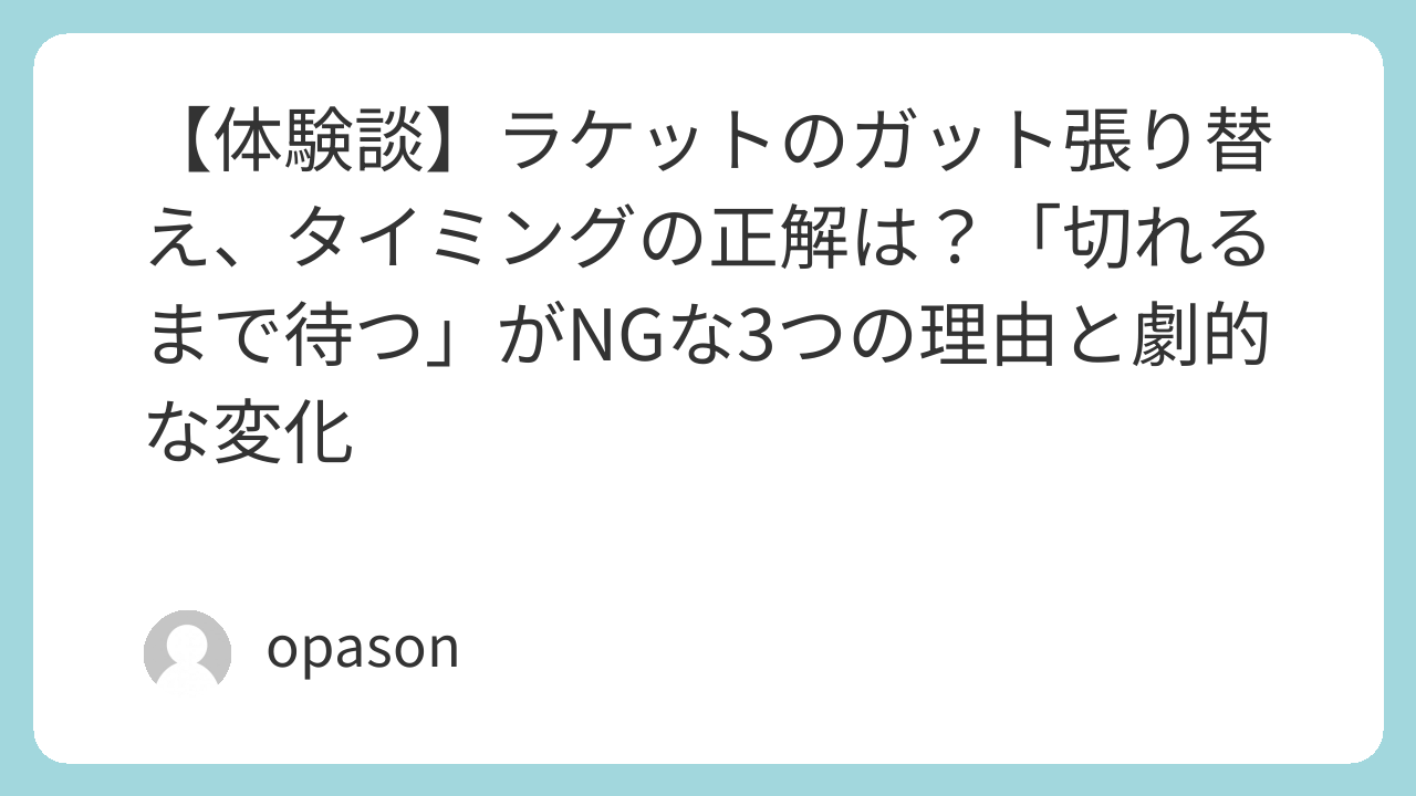 ガットには「馴染む期間」が必要です。張り替えてから最低2〜3日は練習で打ち込み、自分の感覚とガットの反発を同期させるのが鉄則だと痛感しました。