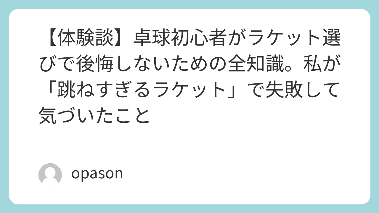私が最初に買ったラケットがまさにそれでした。軽く当てただけでボールが卓球台をオーバーしてしまい、怖くて思い切り振れなくなったのです。その結果、手首だけで調整する変な癖がついてしまいました。