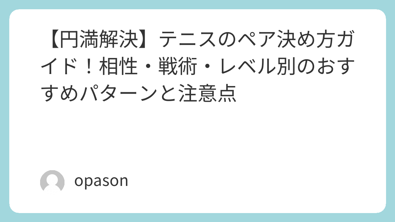 今回は、そんな実体験に基づいた「本当に失敗しないテニスのペアの決め方」を、SEOの観点からも徹底解説します。