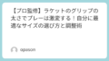 - タオルグリップ:競技レベルが上がると使う人が増えますが、厚みが変わるため初心者には少し扱いが難しいかもしれません。