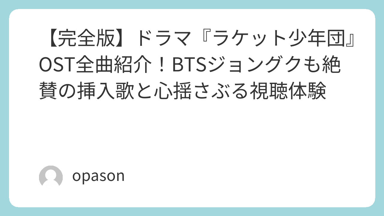 【完全版】ドラマ『ラケット少年団』OST全曲紹介!BTSジョングクも絶賛の挿入歌と心揺さぶる視聴体験