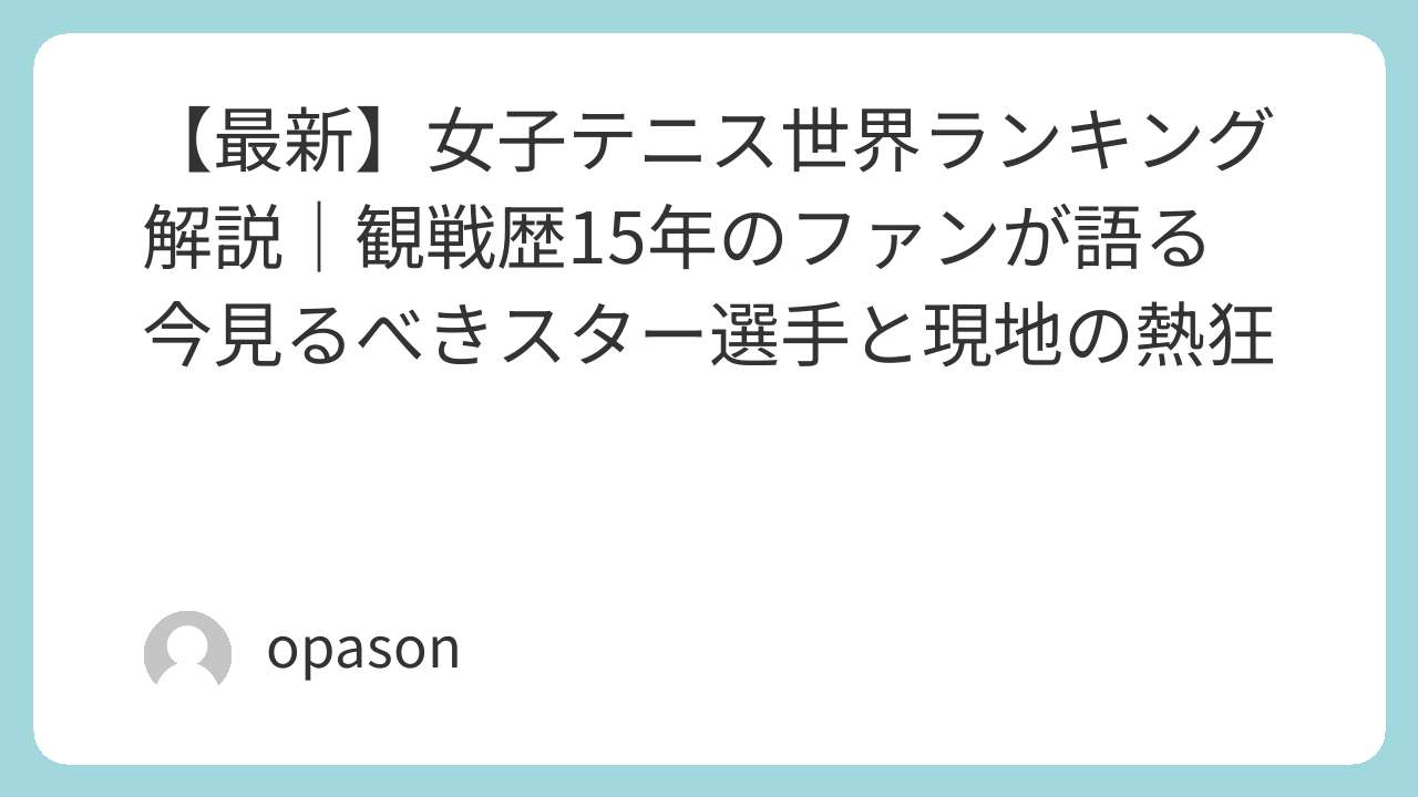 毎週月曜日に更新されるWTAランキングの数字の裏側には、選手たちの血の滲むような努力と、コート上でしか見ることのできないドラマが隠されています。今回は、単なる数字の羅列ではない、現場の空気感を知るファン目線での最新ランキングの見どころをお届けします。