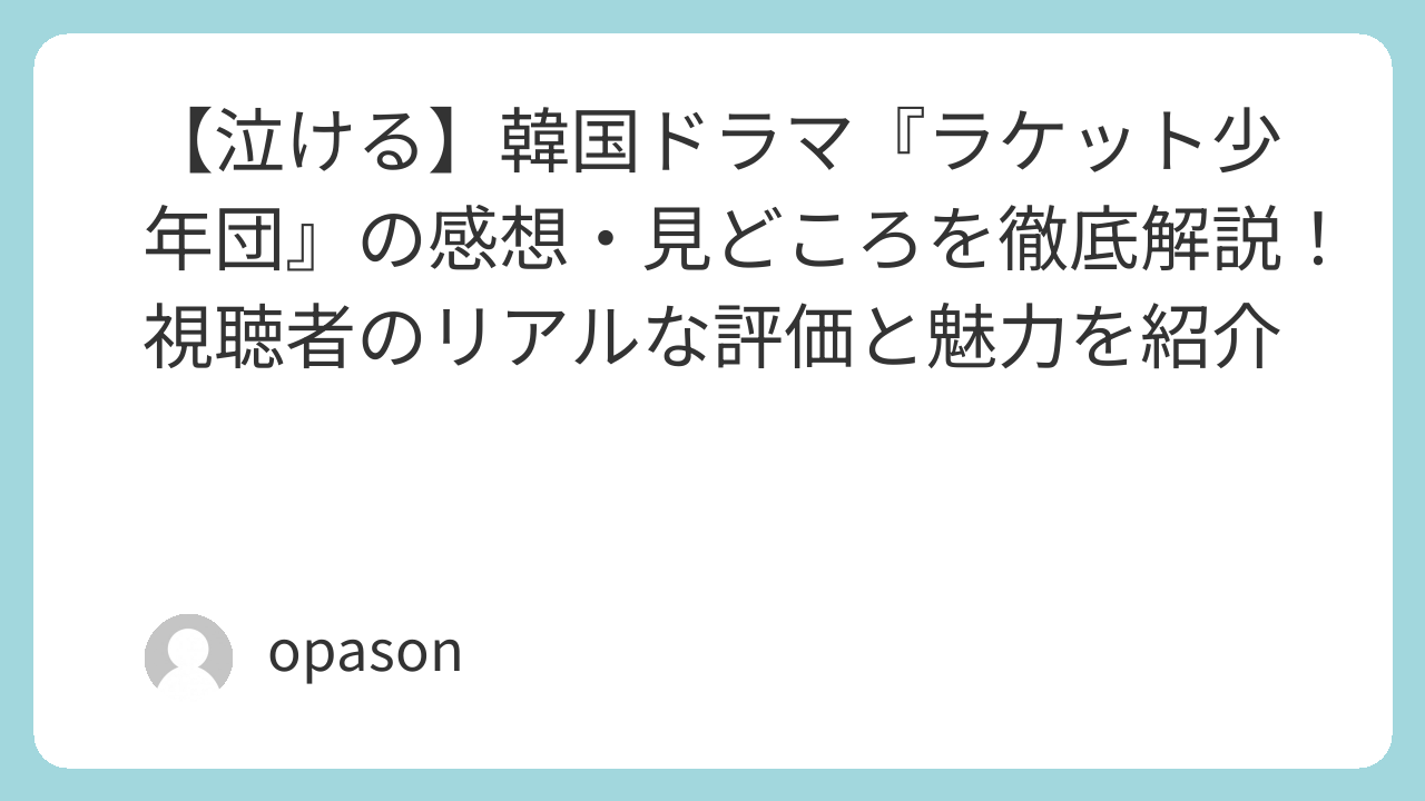 【泣ける】韓国ドラマ『ラケット少年団』の感想・見どころを徹底解説!視聴者のリアルな評価と魅力を紹介