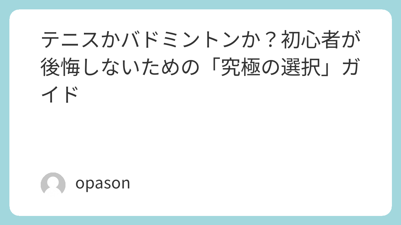 テニスかバドミントンか?初心者が後悔しないための「究極の選択」ガイド