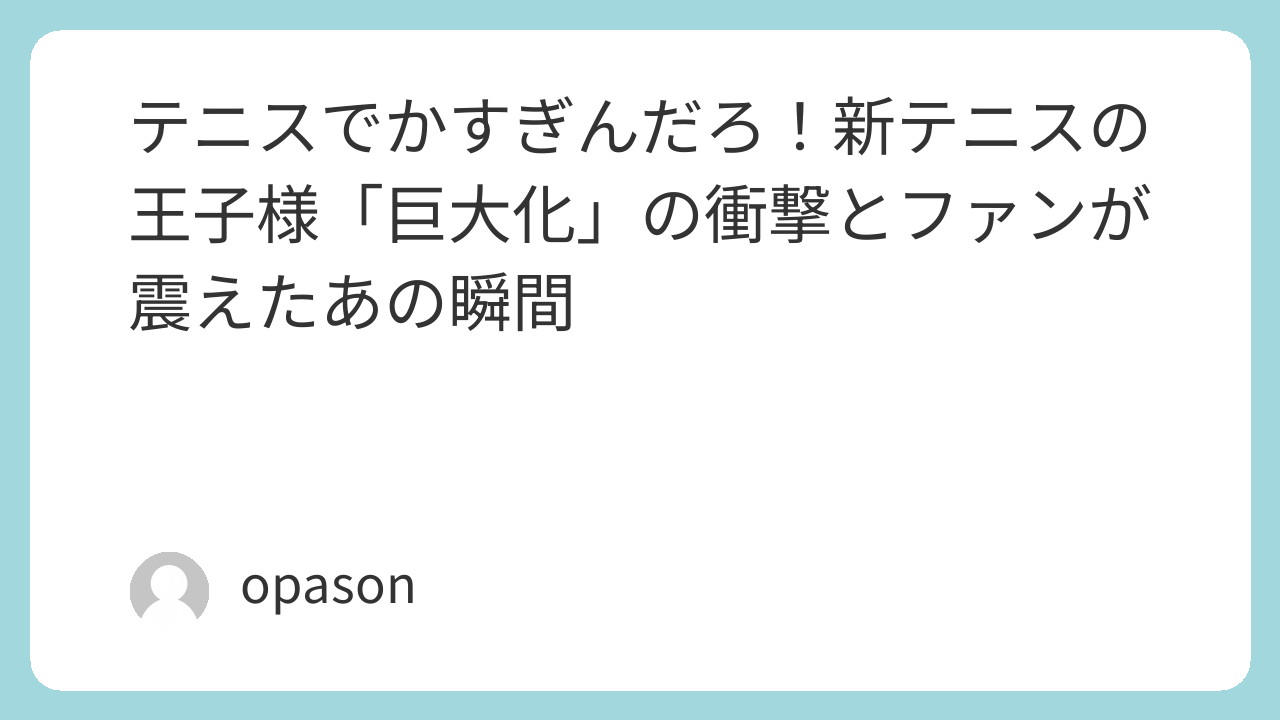 ネットの海を漂っていると、唐突に目に飛び込んでくる「テニスでかすぎんだろ」というパワーワード。初めてこのフレーズと共に流れてきた画像を見た時、私は自分の目が疲れているのか、あるいは高度なコラ画像を見せられているのかと本気で疑いました。しかし、それは紛れもなく公式。漫画『新テニスの王子様』の最新話が更新されるたびに、読者が絶句し、笑い、そして畏怖したあの「体験」について、今回はその熱量のままに語り尽くしたいと思います。