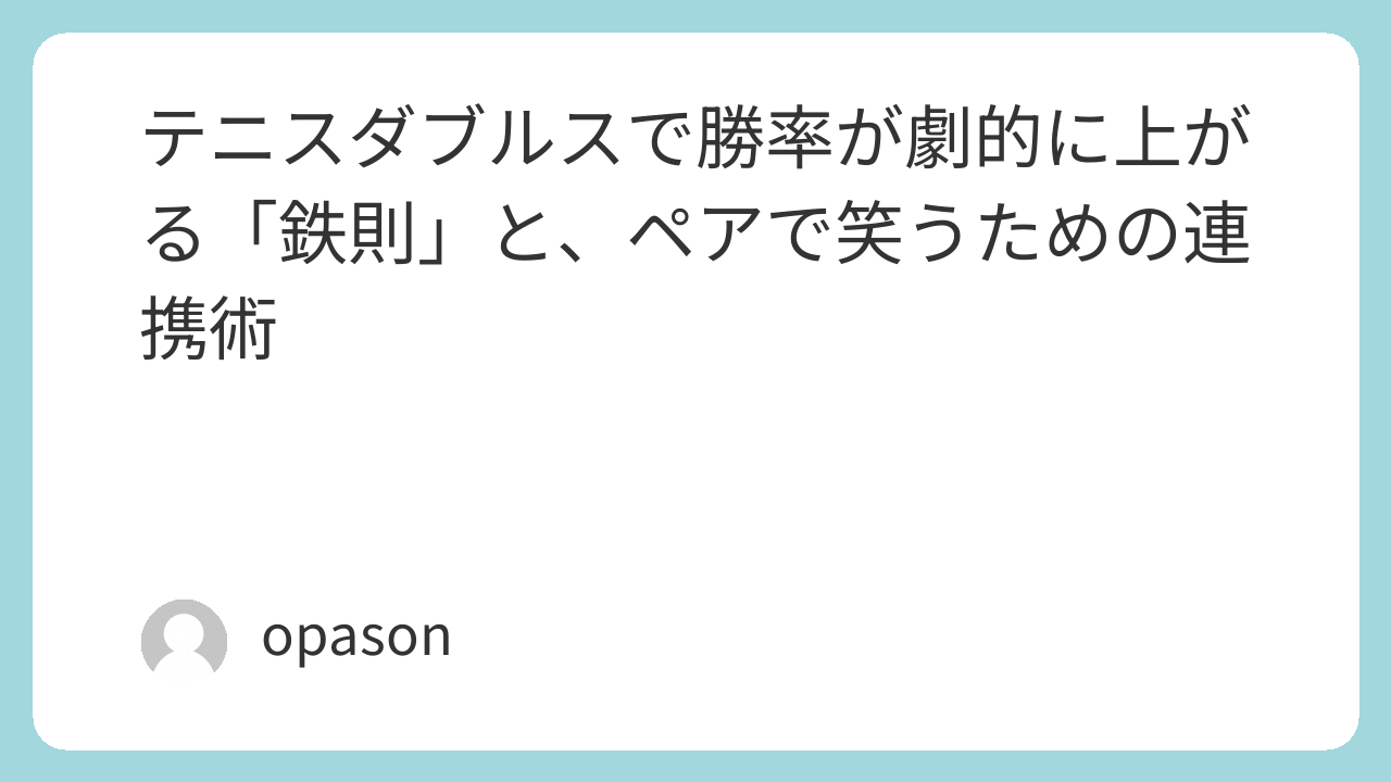 今回は、私が泥臭い負け戦から学んだ、ダブルスで勝つためのリアルな鉄則を共有します。