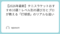 「パカン」という高い音なのか、「ムギュ」という食いつく感覚なのか。私の場合、ヘッド ラジカルを試した時の、手に残るマイルドな打球感が決め手になりました。この感覚が心地よくないと、練習が苦痛になってしまいます。