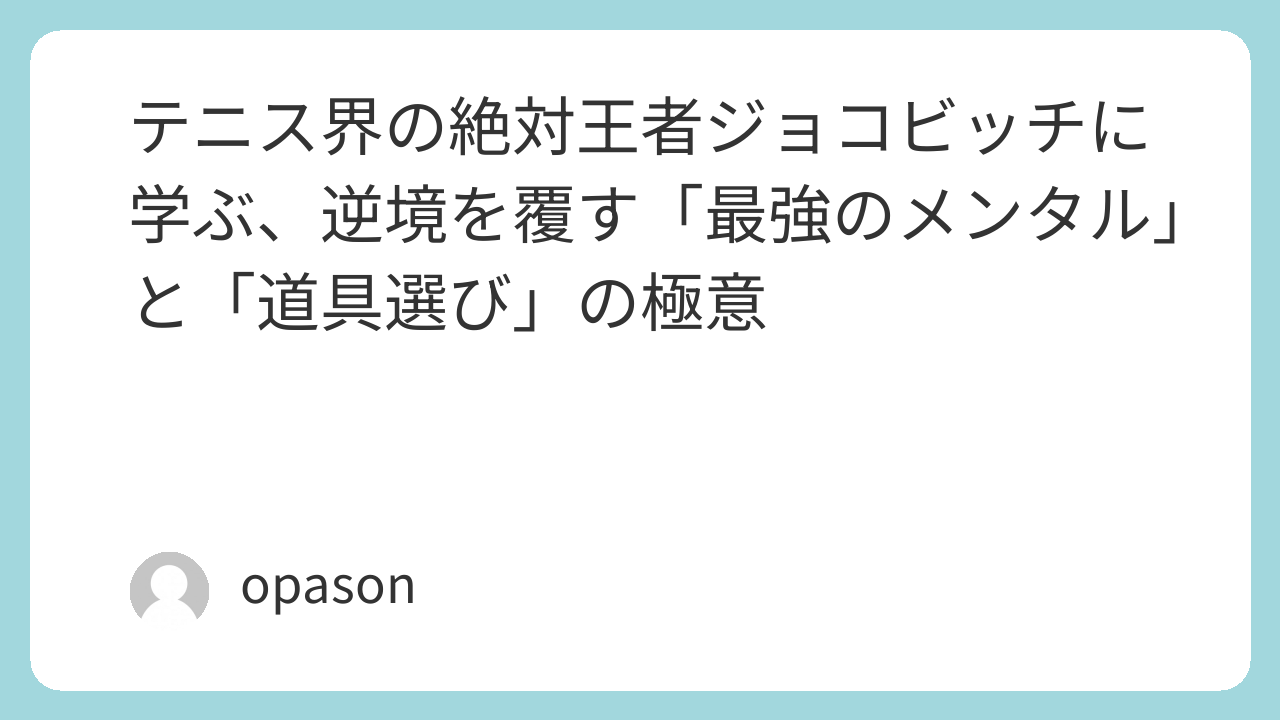 テニス界の絶対王者ジョコビッチに学ぶ、逆境を覆す「最強のメンタル」と「道具選び」の極意