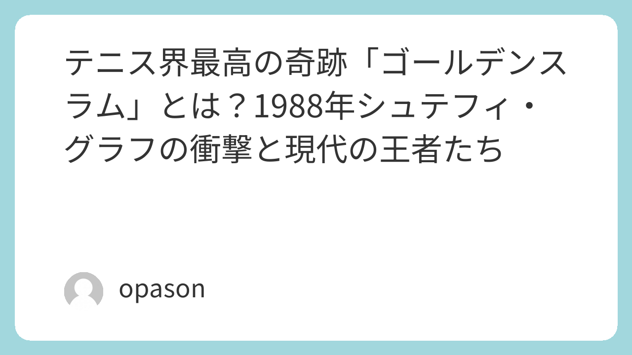 現代の若手選手たちが、最新のスマートウォッチで心拍数やコンディションを緻密に管理し、科学的なトレーニングを積んでいる今、再び「年間ゴールデンスラム」が達成される日はそう遠くないのかもしれません。
